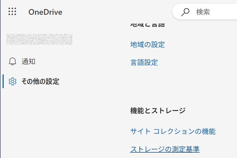 その他の設定 → 機能とストレージ → ストレージの測定基準