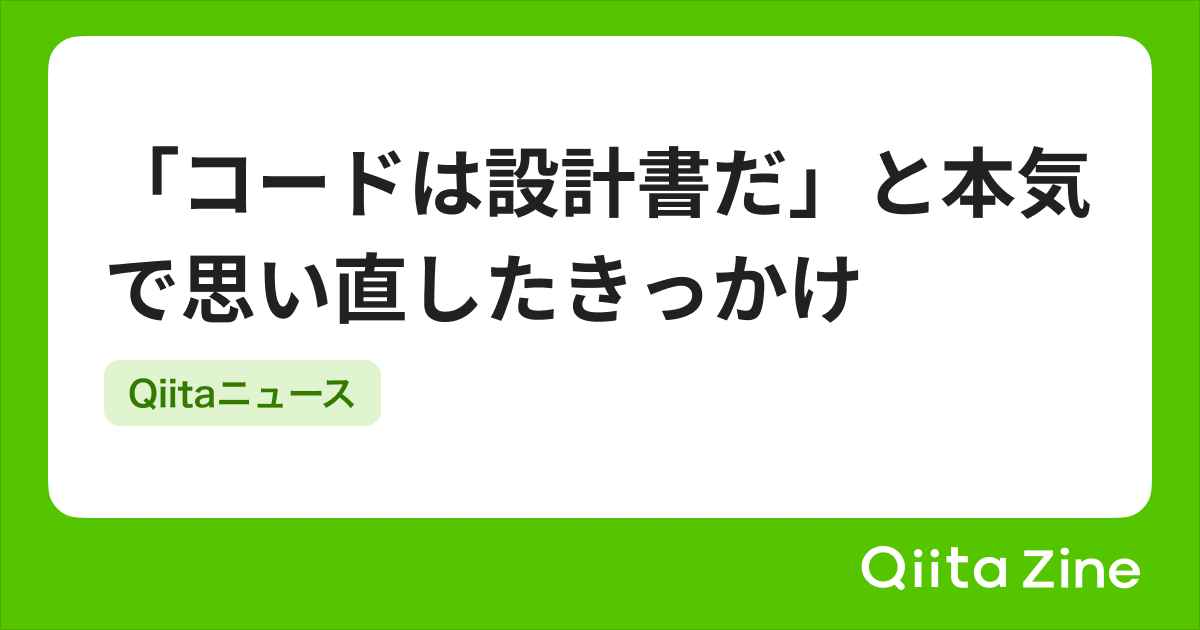 Qiitaニュース | 「コードは設計書だ」と本気で思い直したきっかけ
