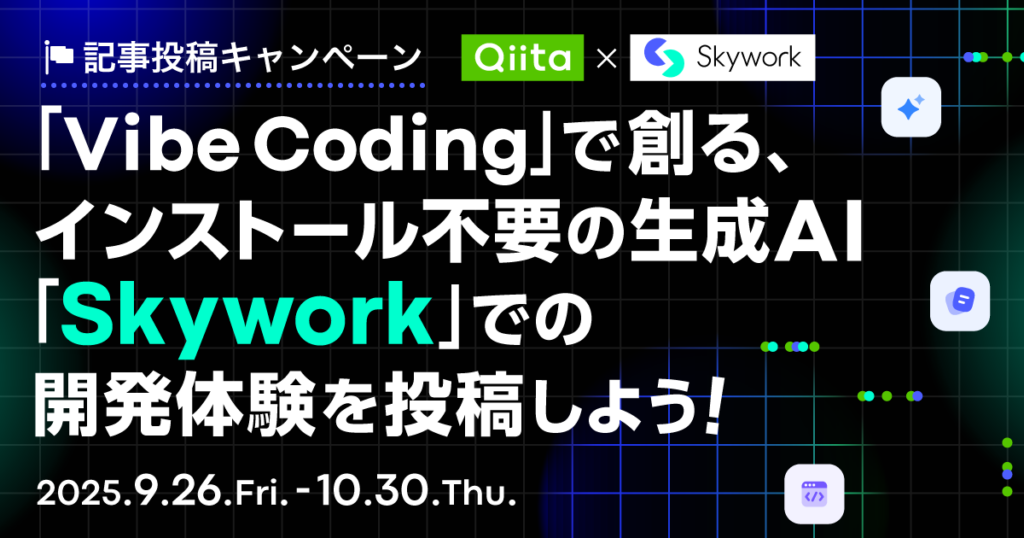 2025年09月26日〜10月30日にSkywork×Qiita記事投稿キャンペーン「「Vibe Coding」で創る、インストール不要の生成AI「Skywork」での開発体験を投稿しよう!」を開催しました!