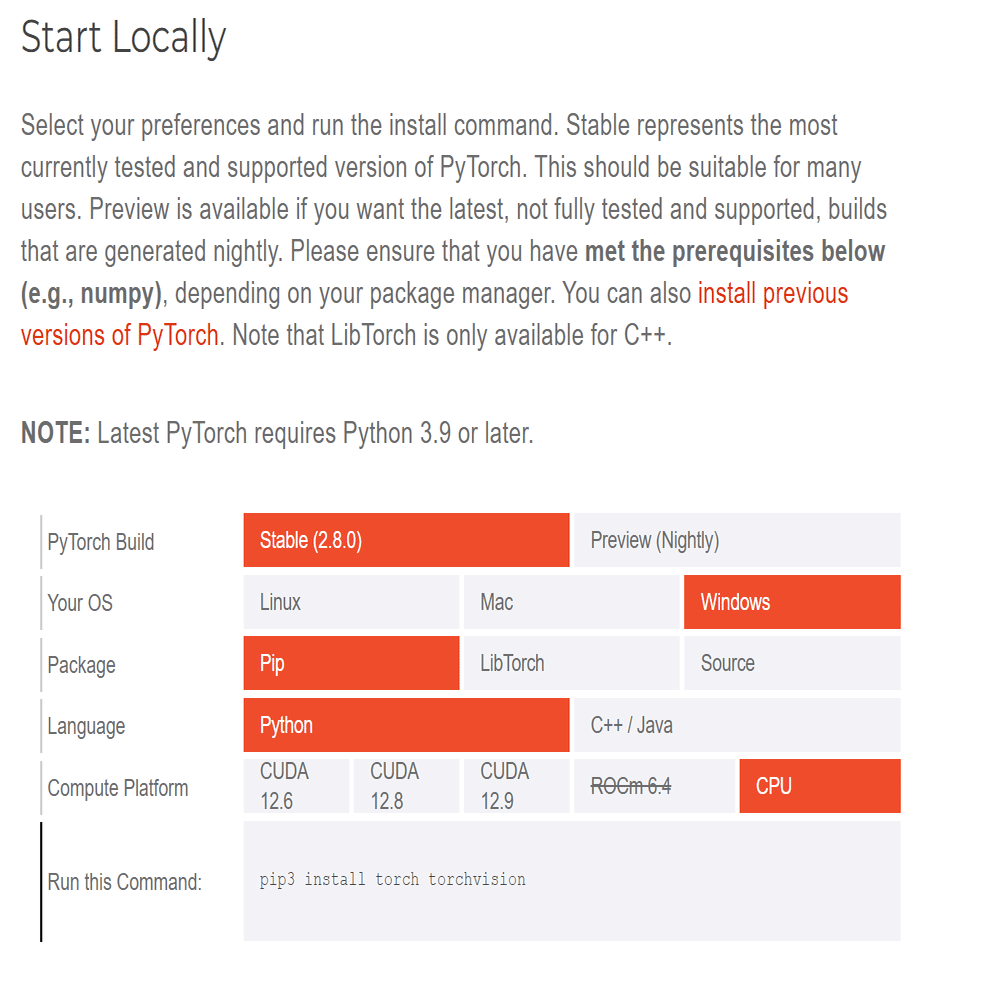 このサイトのオレンジの部分をポチポチして、読者の環境に適したpipを構成しましょう。