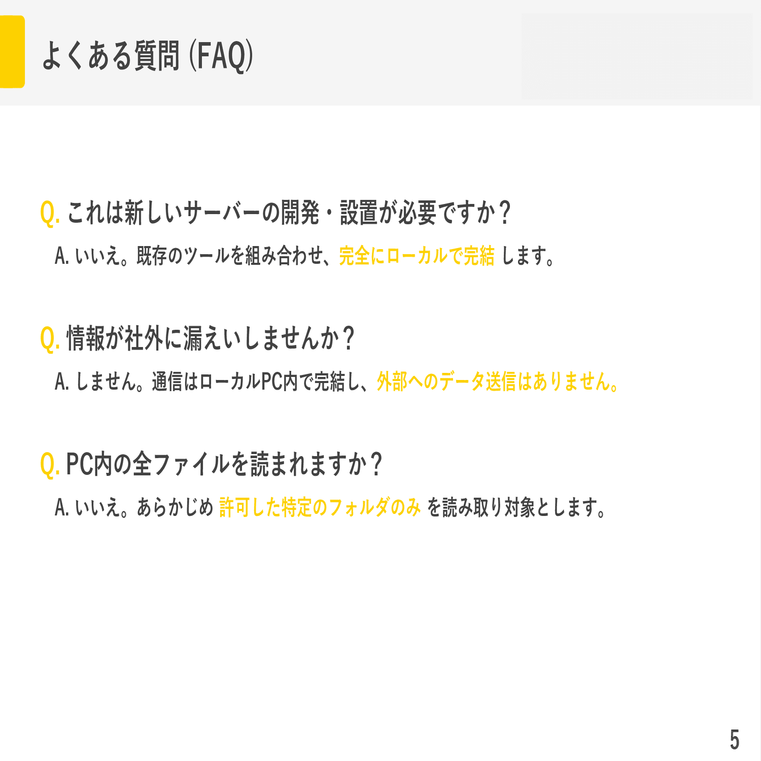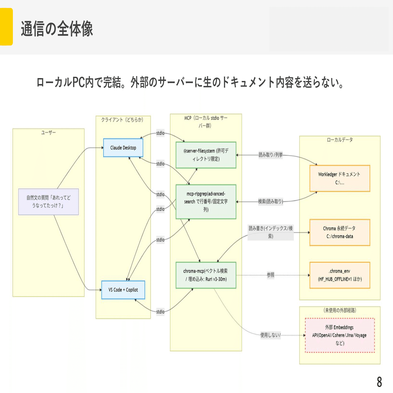 サーバーを新規開発せず、既製の MCP サーバーをクライアント(私達のPC本体)に登録して運用設計したのがポイントです。
