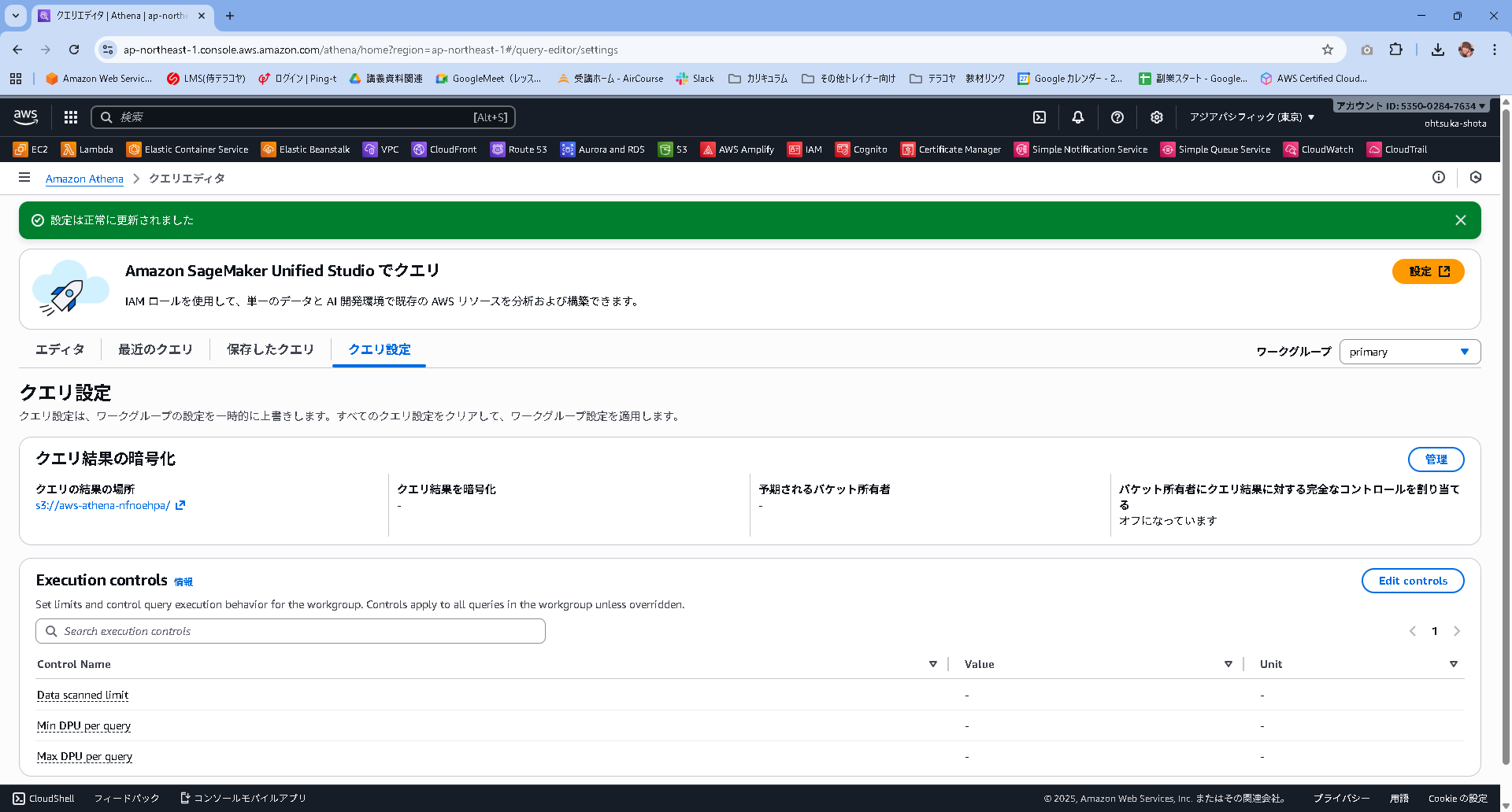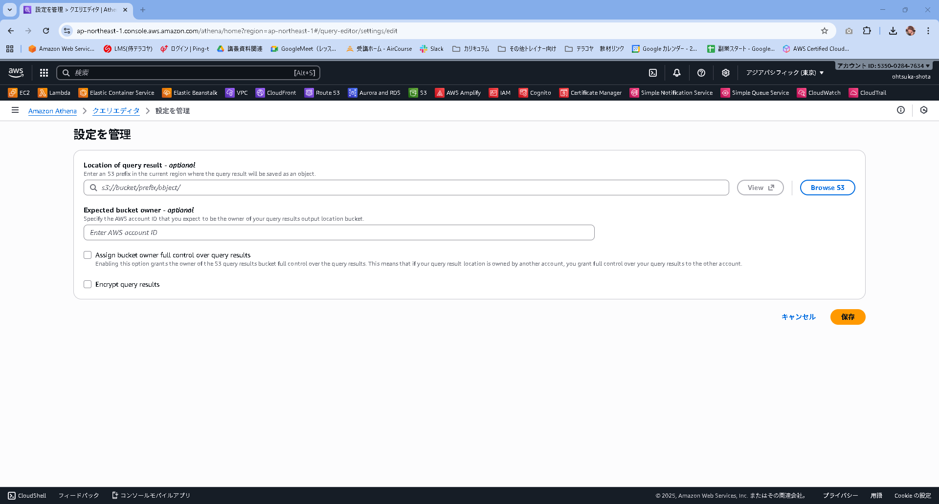 クエリ設定の画面が開くと思います。クエリの結果の場所に先ほど指定したS3バケットのURLが表示されていると思います。