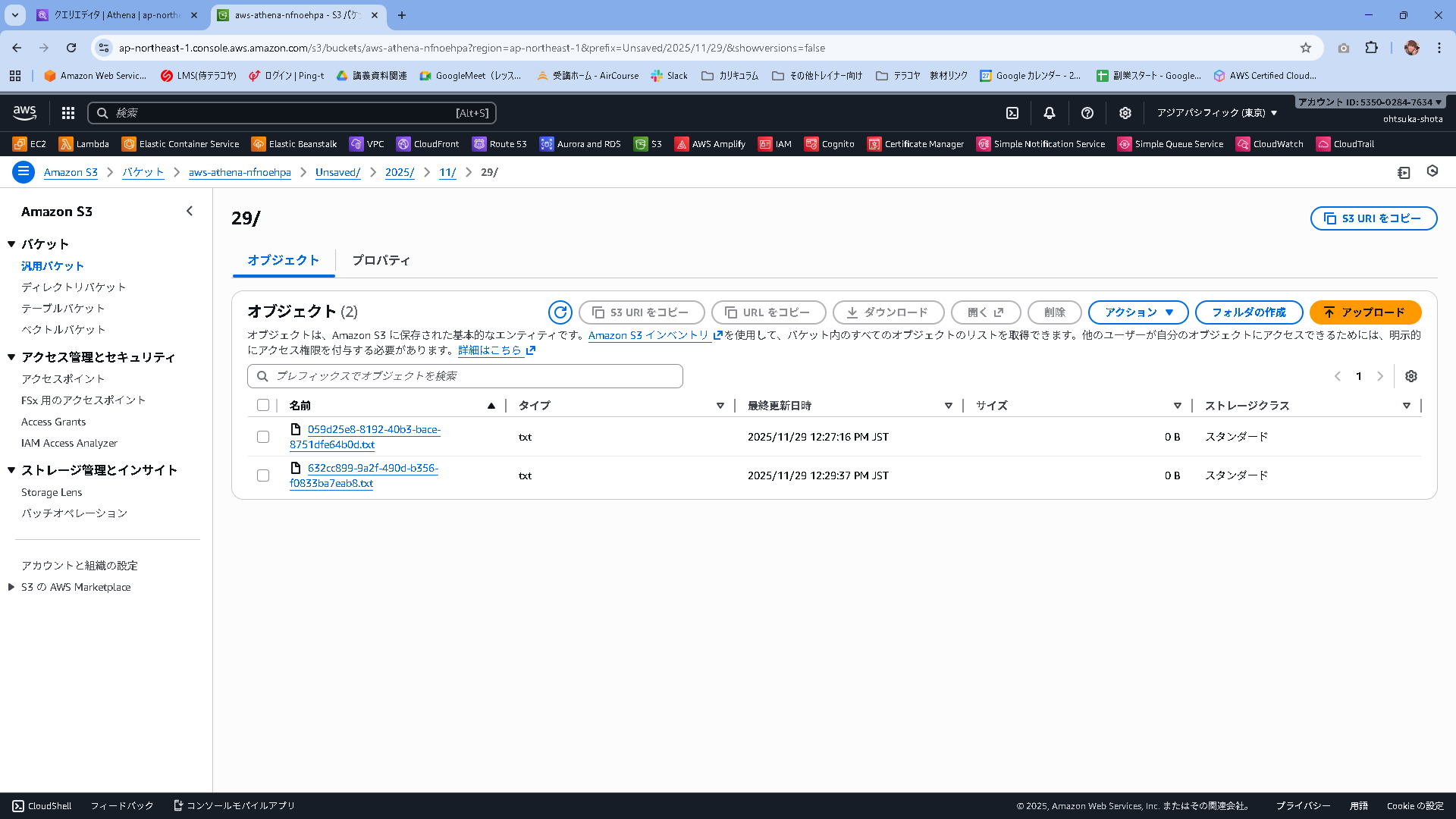S3バケットを見ると、txtファイルが作成されていることがわかります。