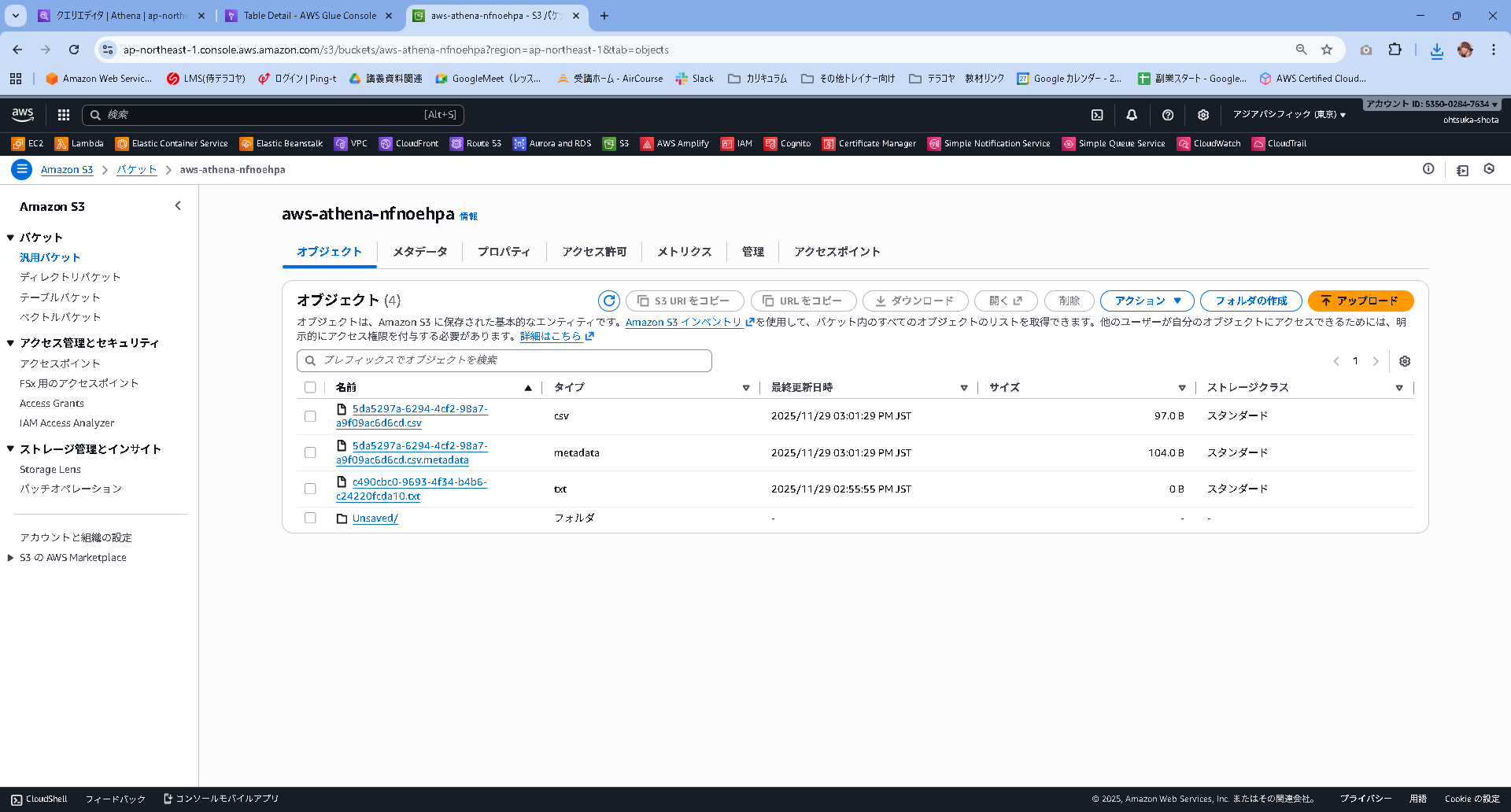 ※このS3にAthenaで実行したクエリ結果が格納されていく形になります。