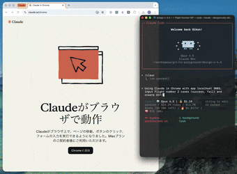Chrome拡張も単体機能としてAIブラウザ的な使い方がされていたが、最近のアップデートでClaude CodeからMCPツールで、Chromeを直接操作できる機能がリリースされた。