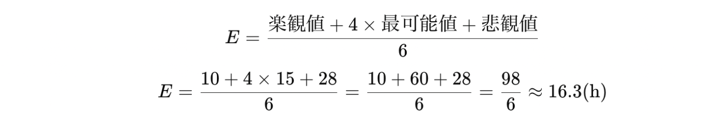 「不確実性コーン」の概念は理解できても、具体的にどのくらいブレる可能性があるかは見えづらいもの。そこで役立つのが三点見積もり(PERT見積もり)です。各タスクについて以下の3値を見積もり、期待値と標準偏差を導き出すことで、ブレ幅を定量的に把握できます。
