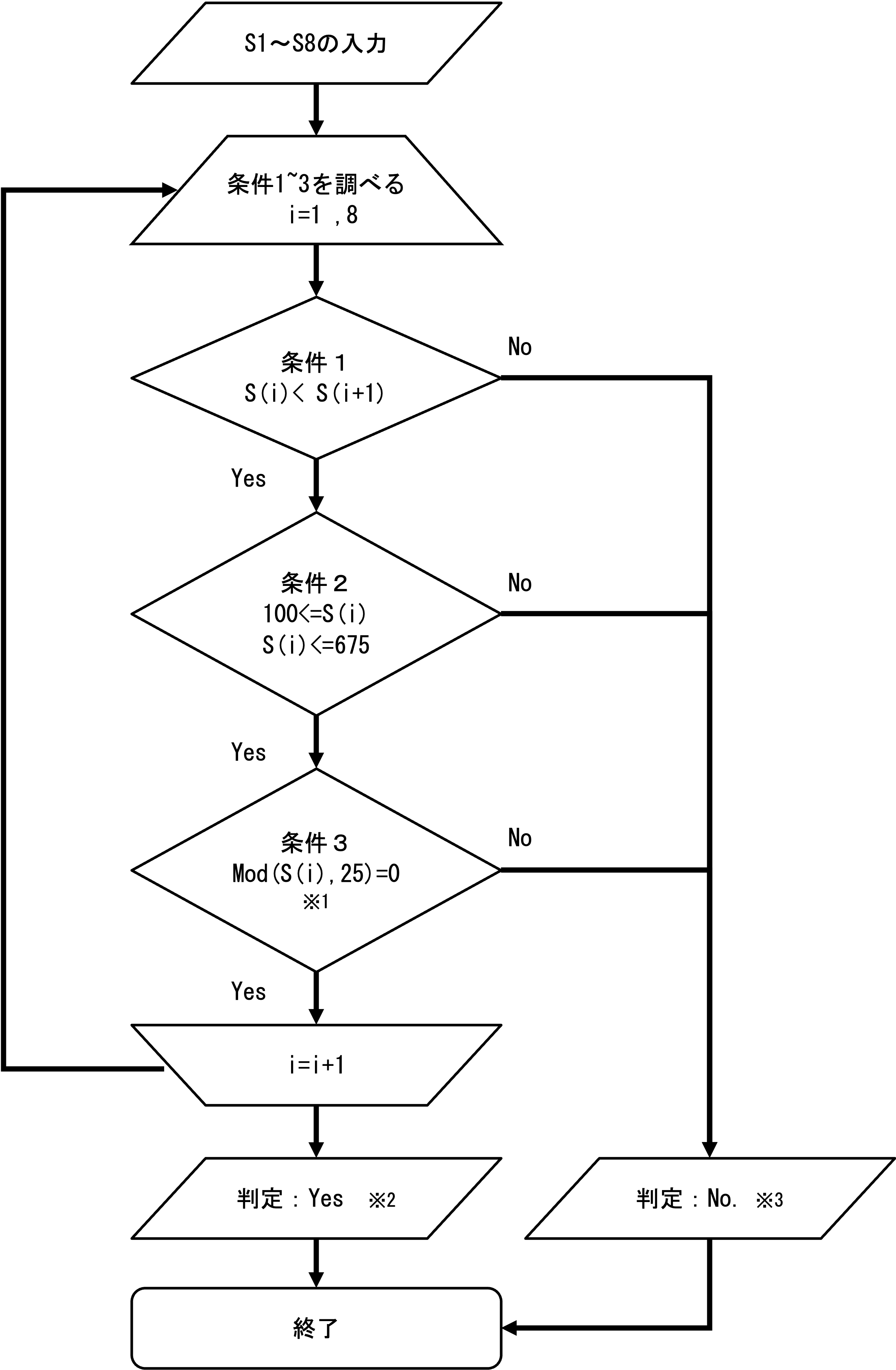S1〜S8のの整数が条件1〜3を全て満たす場合、Do文を抜けられるためYesを出力します。