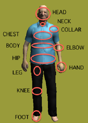 どのFree,有料の3Dモデルも殆どが共通して以下の箇所にボーンが用意されていますので、