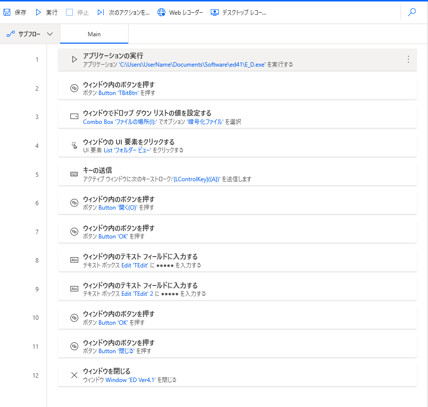 というわけで、PowerAutomateDesktop(PAD)の練習をしてみようと思う。PADを使って、指定フォルダにあるファイルを指定ソフトで暗号化/復号する。本当はこのソフトを使った暗号化/復号がやりたいのだが、まずはフリーソフト「ED」で操作を確認してみる!事前学習は「Microsoft Power Automate Desktop for Windows 10 初心者向け勉強会」の1:21:51~のところを見ただけ。