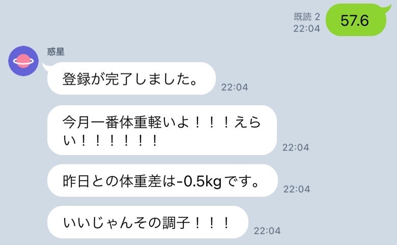 月で一番軽い体重を更新した時の場合です。(惑星がbot)