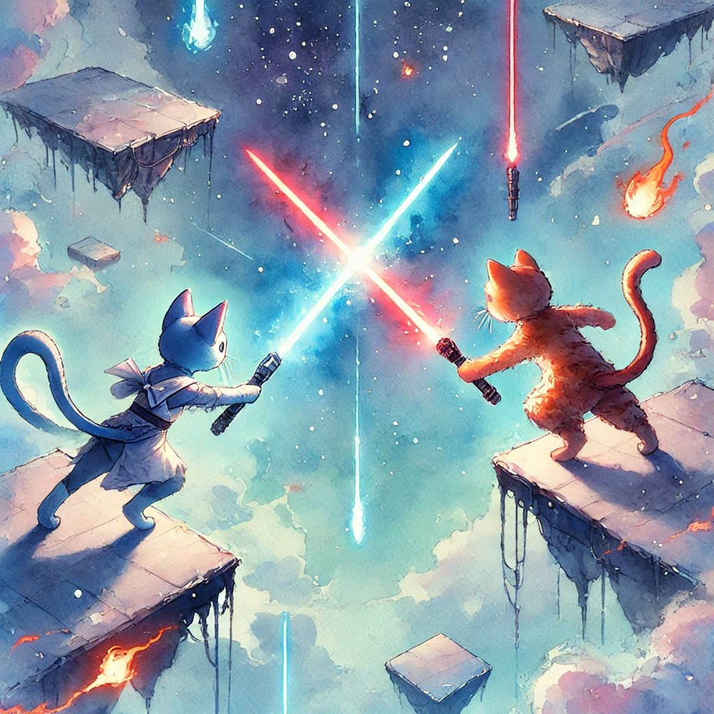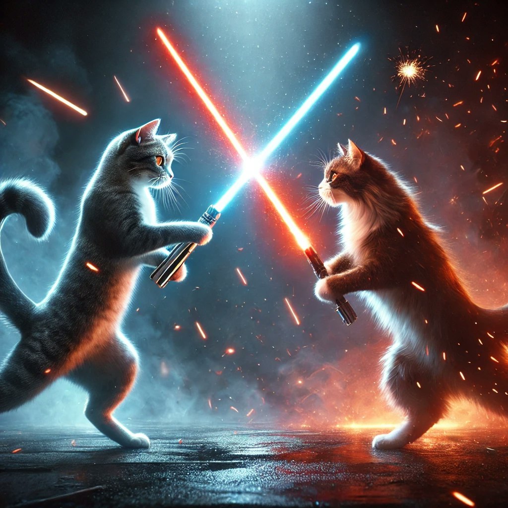 「ライトセーバーで戦う猫 で画像を生成してください。」