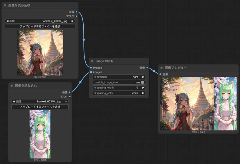 このノードで画像はこんな風にくっつきます。