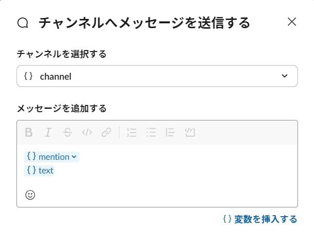 リクエストを受け取ったらチャンネルに対してメンションとコメントを送信するよう設定しておきます。