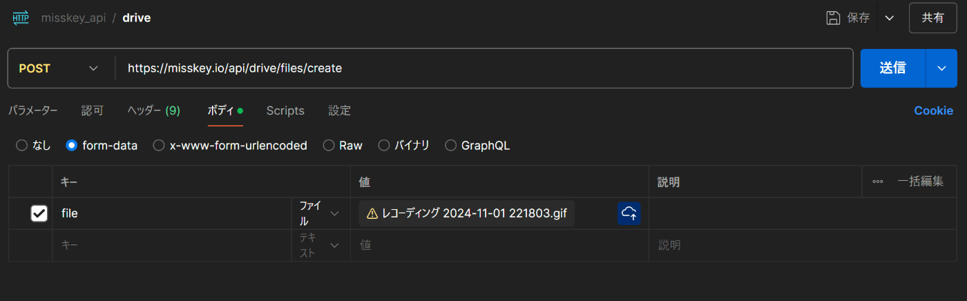 misskey apiで画像アップロードをするときにはまったのでメモ