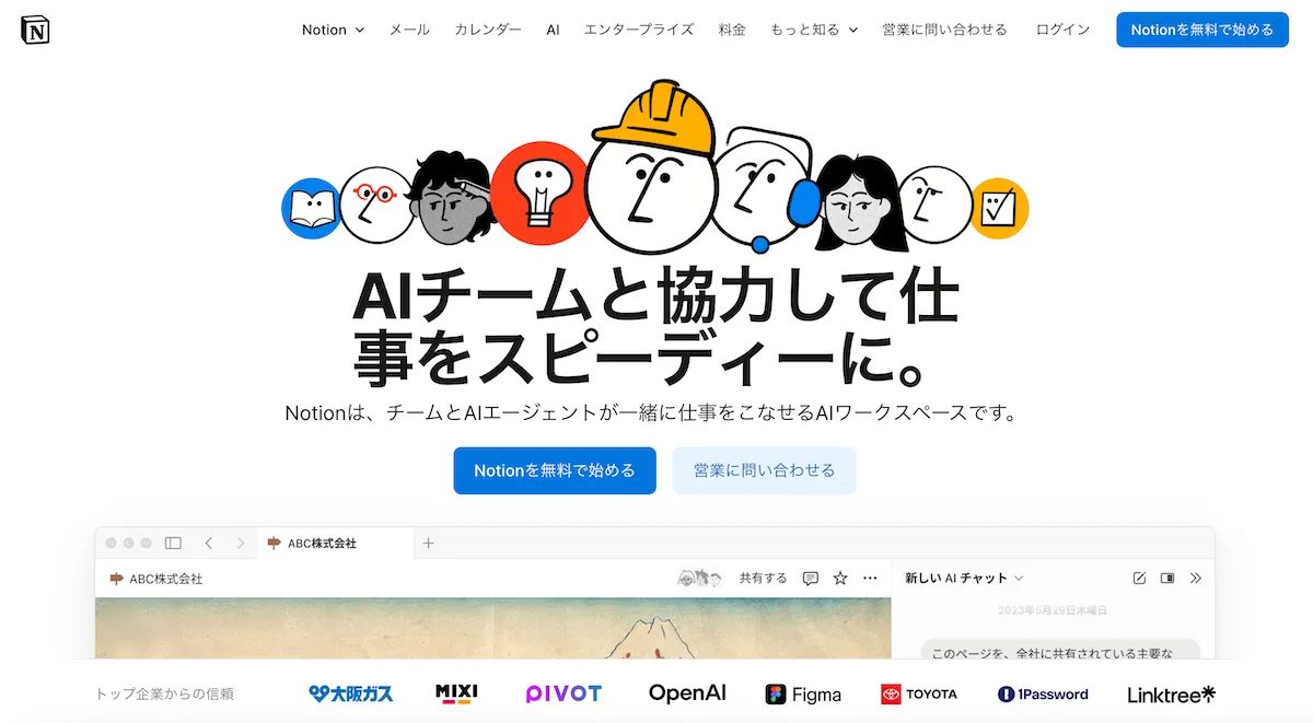 Notionは多機能なオールインワンのナレッジ共有ツールです。世界中の企業で活用されています。ドキュメント作成やデータベース管理、タスク管理など幅広く利用可能。
