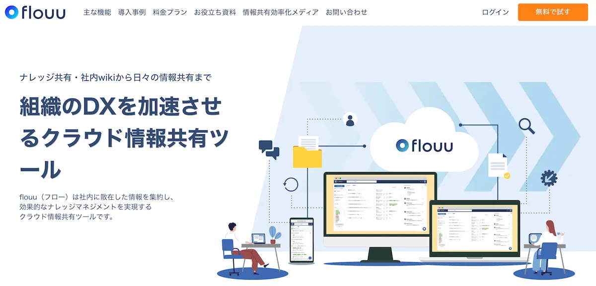 flouuは業務マニュアルの作成に特化したナレッジ共有ツールです。マニュアルのステップごとに動画や画像を埋め込みやすく、分かりやすい手順書を作成できます。操作ログや閲覧履歴の記録も可能で、オンボーディングや研修に役立ちます。