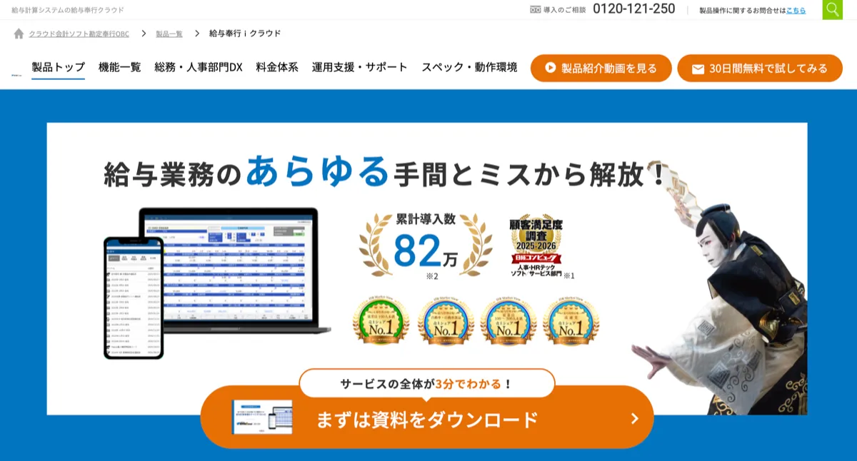 給与奉行クラウドは、豊富な機能と高いカスタマイズ性を誇る給与計算ソフトです。累計導入数は82万を突破しています。業界ごとの特性に応じた設定が可能で、特に製造業やサービス業に強みがある点が特徴です。