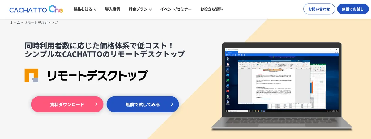 CACHATTOは、特に企業向けに設計された高セキュリティリモートデスクトップサービスです。データを端末に残さない設計や、専用のゲートウェイを経由した接続が特徴で、多拠点や大規模環境にも対応しています。