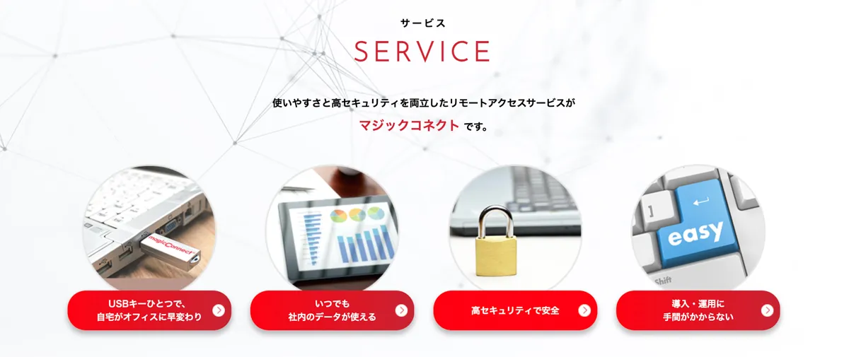 MagicConnectは、特にセキュリティ意識の高い企業や金融機関での利用に適しています。リモートワーク環境を安全に整えたい企業にとって、有力な選択肢となるでしょう。