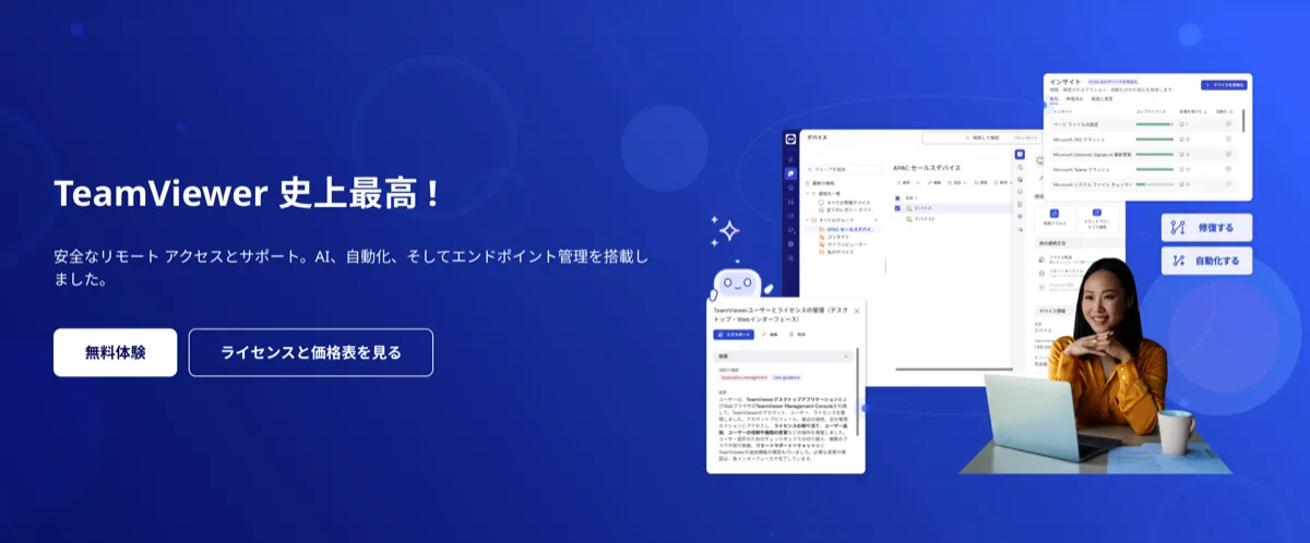TeamViewerは、リモートアクセスの分野で世界的に広く使用されているツールです。多機能かつシンプルな操作が可能で、個人利用から企業規模まで幅広く対応します。