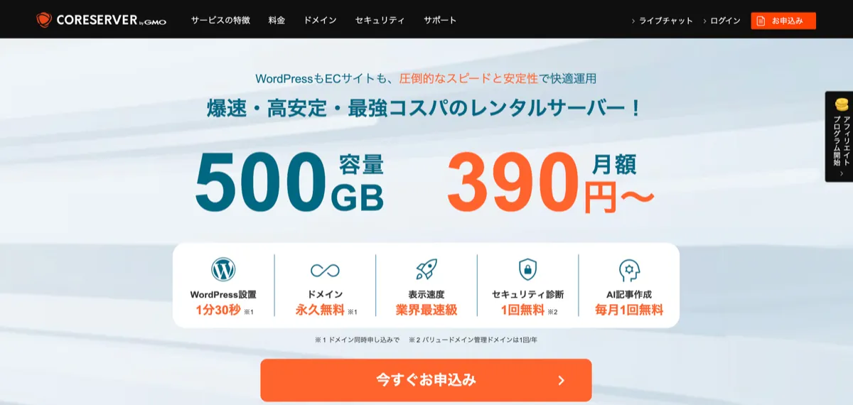コアサーバーは、高い自由度と豊富なリソースを低価格で提供することに特化した、中級者・上級者や複数サイト運営者向けのレンタルサーバーです。GMOグループが運営しており、サーバーの技術的な安定性にも定評があります。
