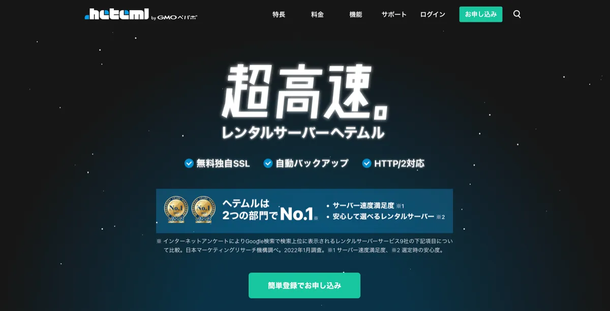 ヘテムルは、高速性と柔軟なカスタマイズ性が特徴のレンタルサーバーです。「ロリポップ!」と同じく、GMOペパボ株式会社が運営しています。「ロリポップ!」よりも高性能なスペックで、より多くのリソースを利用できます。