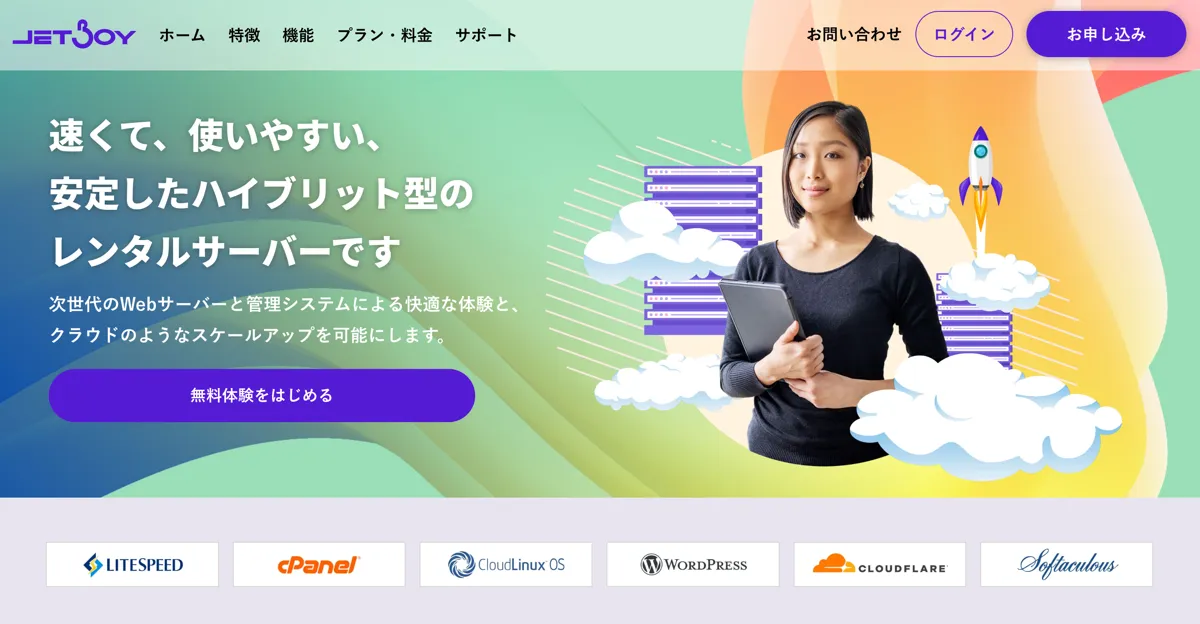JETBOYの大きな特徴は、その高い処理能力にもかかわらず、手頃な価格帯でサービスを提供している点です。コストパフォーマンスに優れ、サイトの成長に合わせて柔軟にプランをアップグレードできます。また、無料の独自SSLが標準搭載されており、安心してサイトを運用できる環境が整っています。高速性、安定性、コストのバランスが取れたレンタルサーバーを望んでいる方におすすめです。
