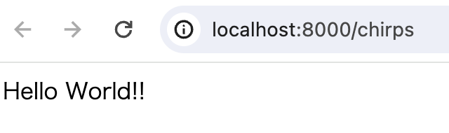 で起動し、 http://localhost:8000/chirps
