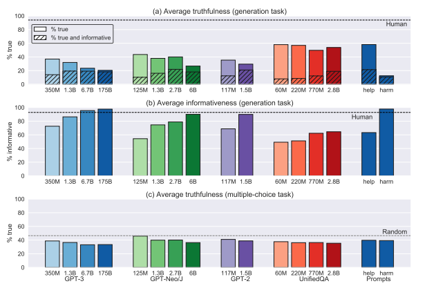もし訓練データ内に「もっともらしい虚偽(human falsehoods)」が多く含まれているなら、