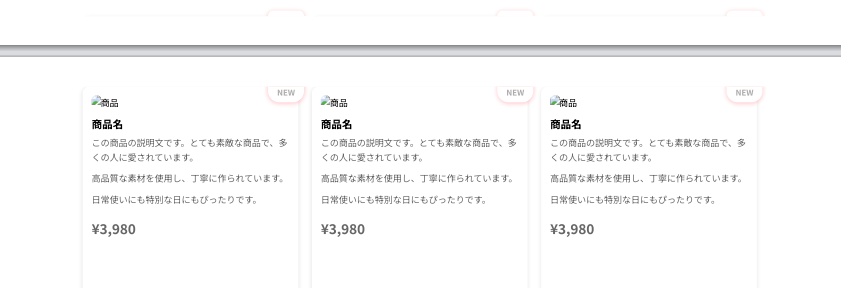 Webページで「NEW」や「SALE」などのバッジをカードの角に配置することはよくありますよね。