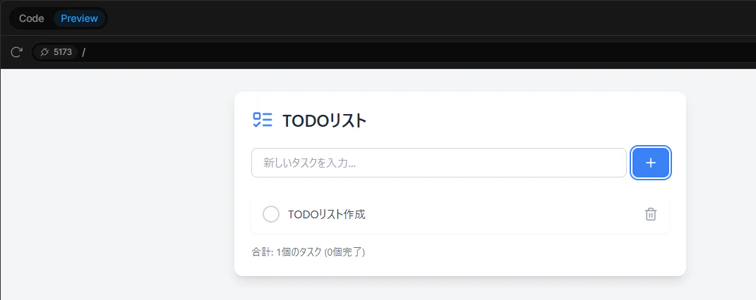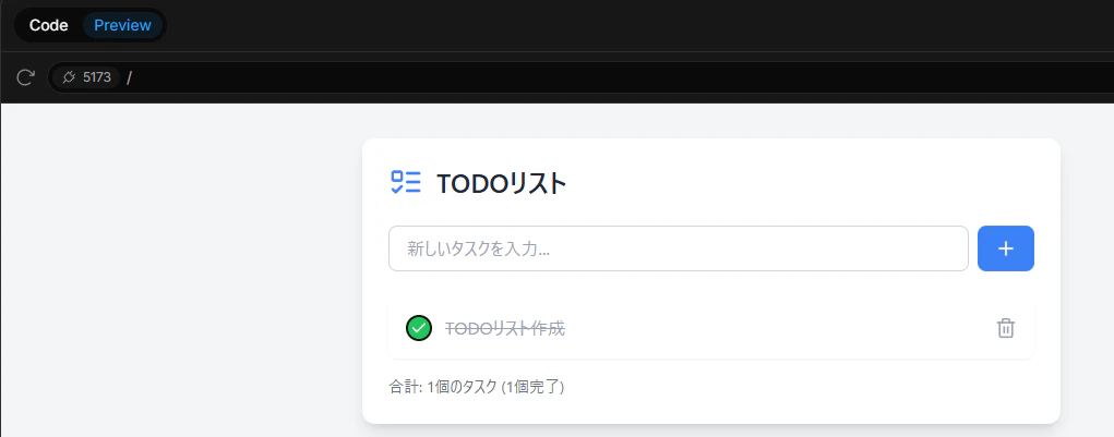 作成が完了すると、先ほど入力した内容が反映されたTODOアプリになりました!
