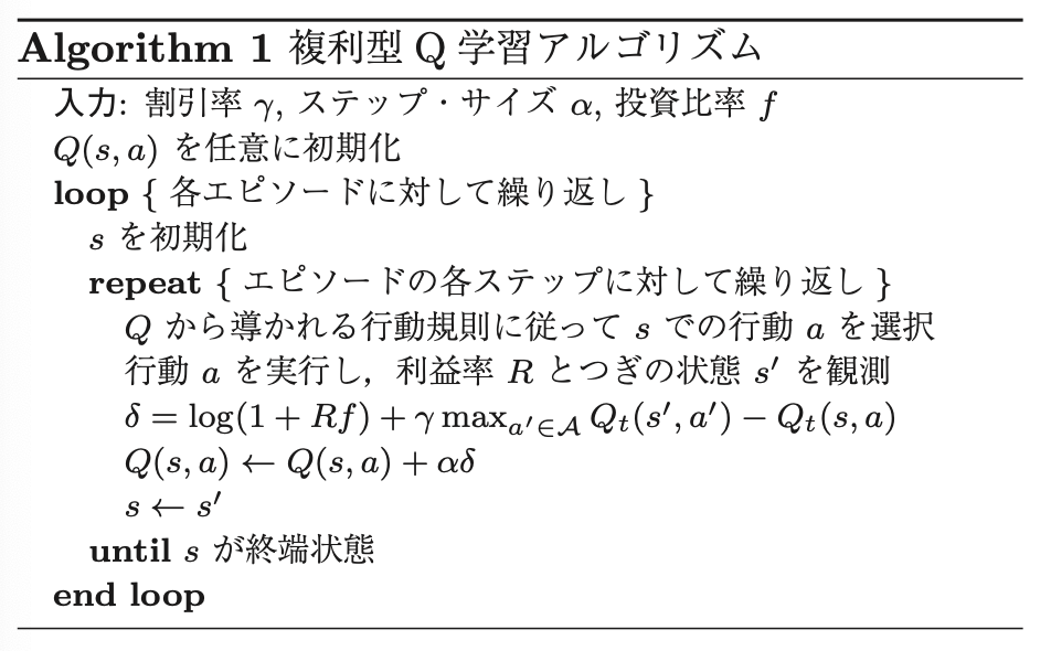 複利型Q学習のアルゴリズムをいかに示す。