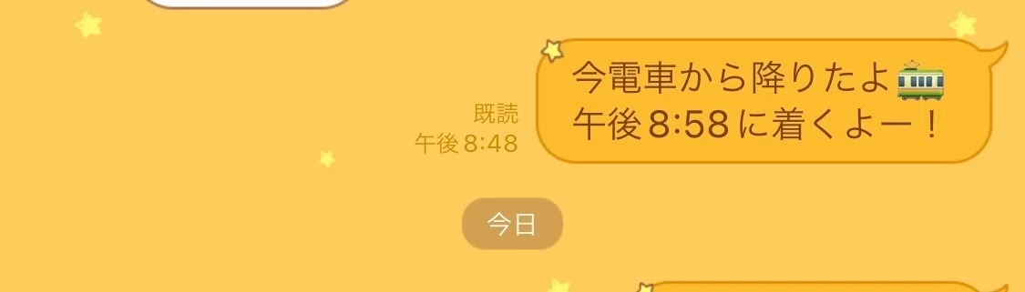 駅着いた!家に〇〇時〇〇分に帰るね!