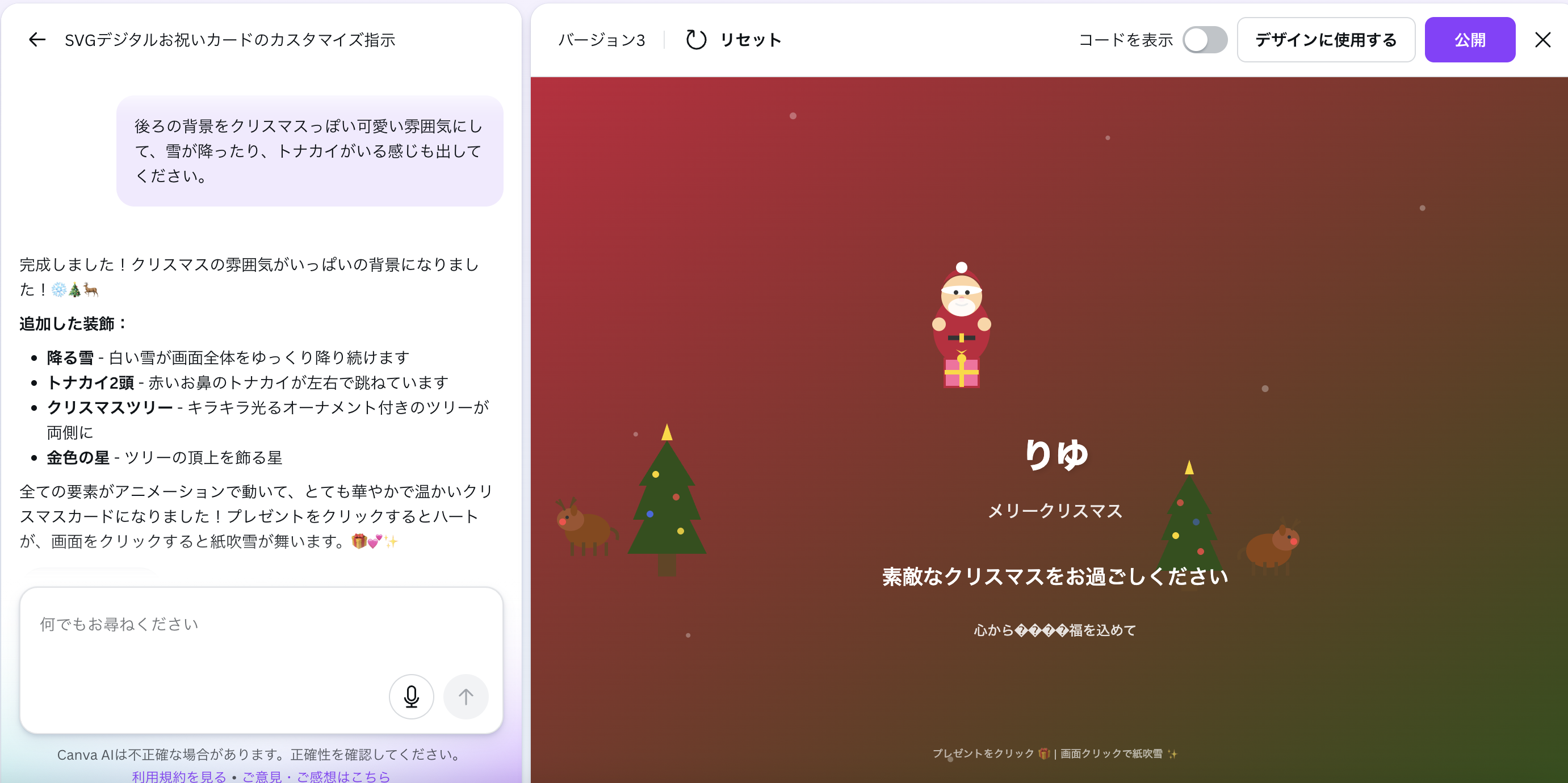 どんなクリスマスカードにするかAIと相談しながら作っていきます。