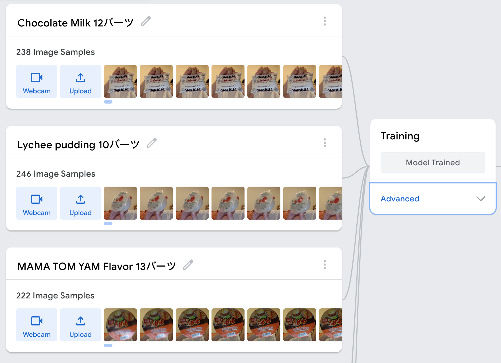 全ての商品のサンプリングが終わったらトレーニングボタンを押して、学習させます。
