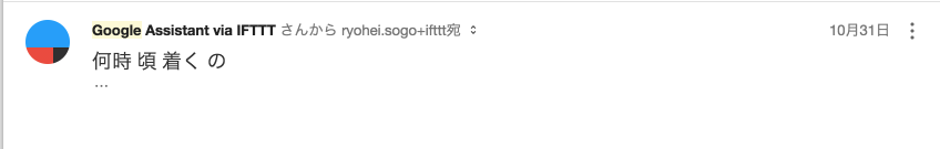 「OK.Google パパにメール 何時頃着くの?」としゃべると、こんなメールが届きます。