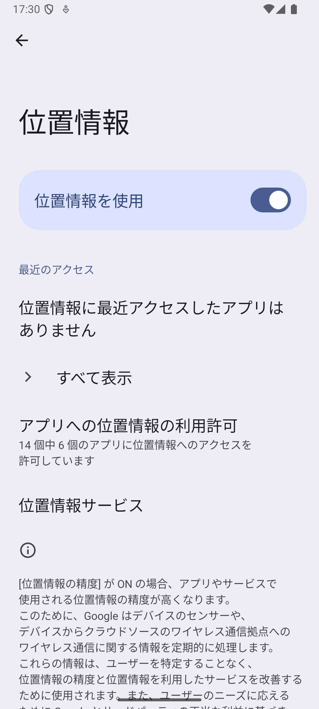 Androidでは端末設定で位置情報を無効にできます。また、位置情報の精度を有効にしていないと十分な精度の位置情報を取得することができません。