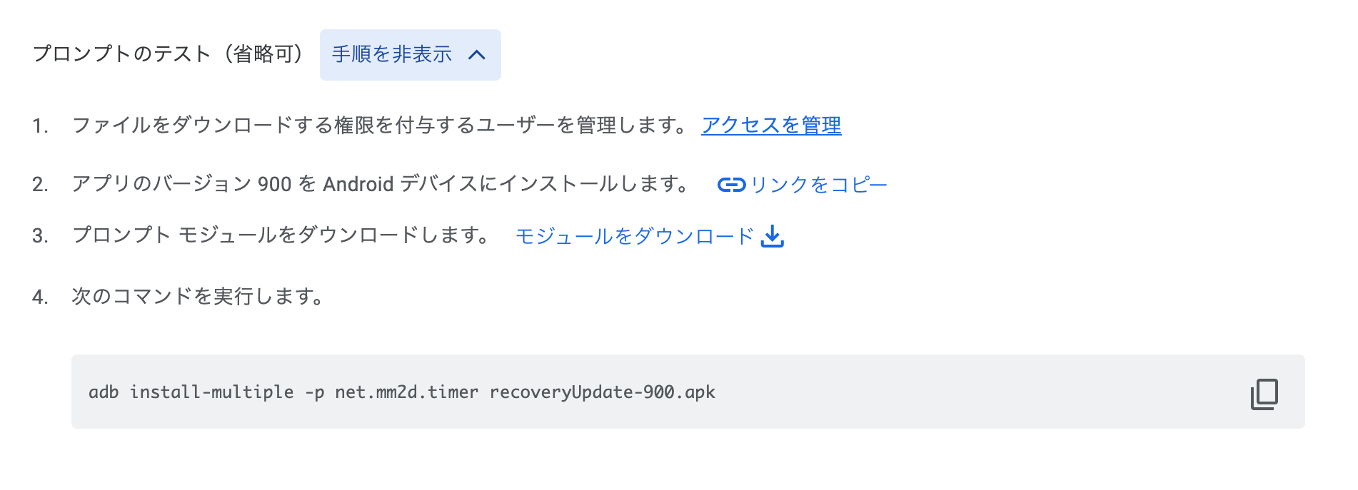 また、この機能をテストすることもできます。「プロンプトのテスト(省略可)」の「手順を表示」をクリックすると手順が表示されます