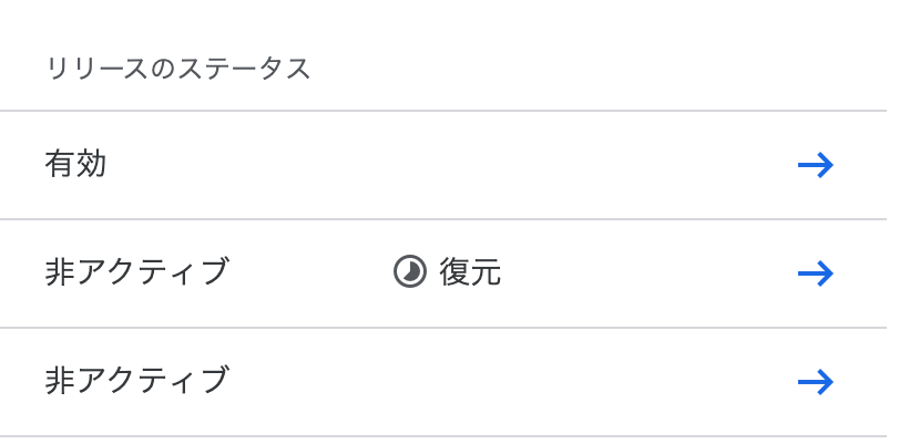 反映すると、最新のリリースとバンドルの一覧で対象のバージョンに「復元」というマークがつくようになります