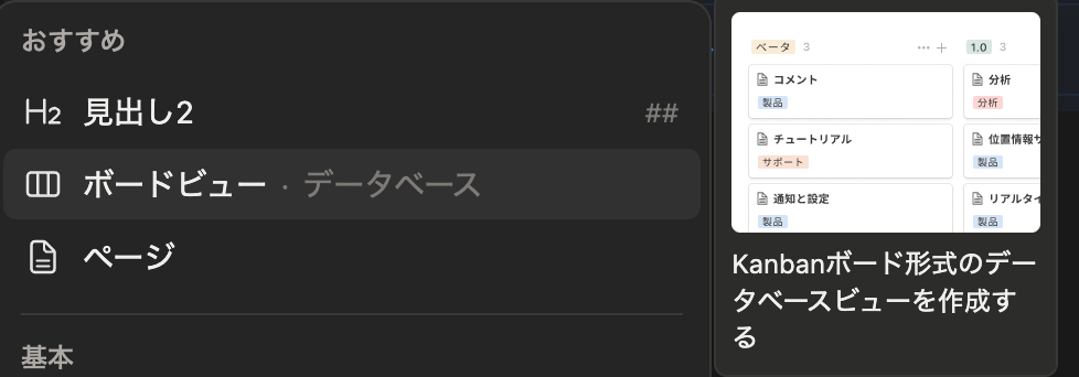 その他にも【優先度別】など用意したプロパティ毎に〇〇別のボードビューを作成することができるため、ニーズに応じて様々な見せ方ができることがボードビューの強みだと思いました。