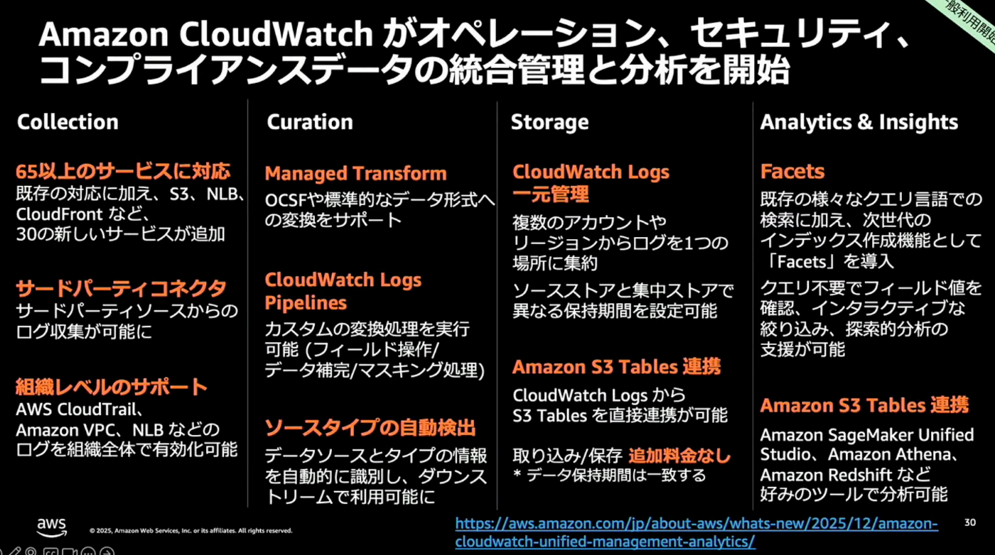 CloudWatchがオペレーション、セキュリティ、コンプライアンスデータの統合管理と分析を開始