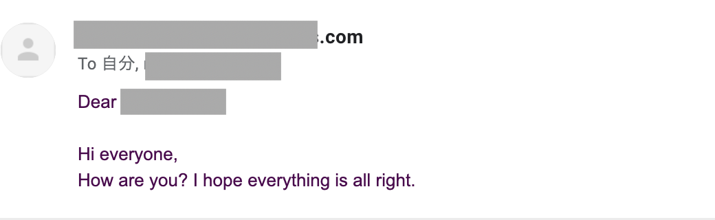 今回の例では宛先に英語圏と中国語圏を含み、本文(都度変更文)としてそれぞれの言語のメッセージボックスを用意しておき、必要に応じて挨拶を記入してもらいます。