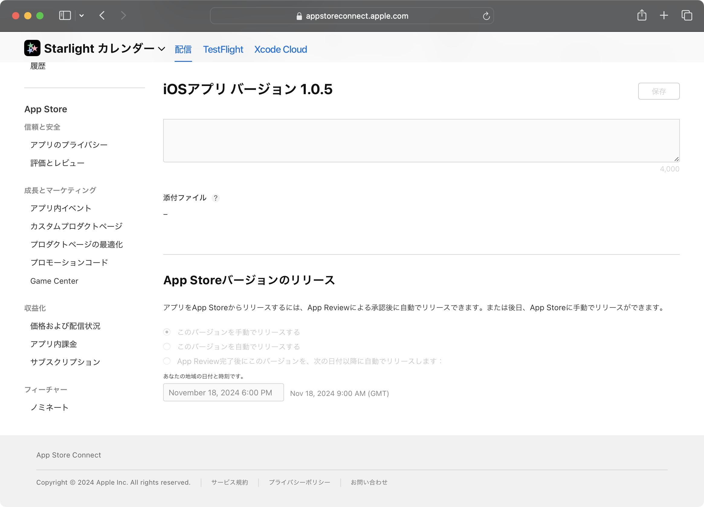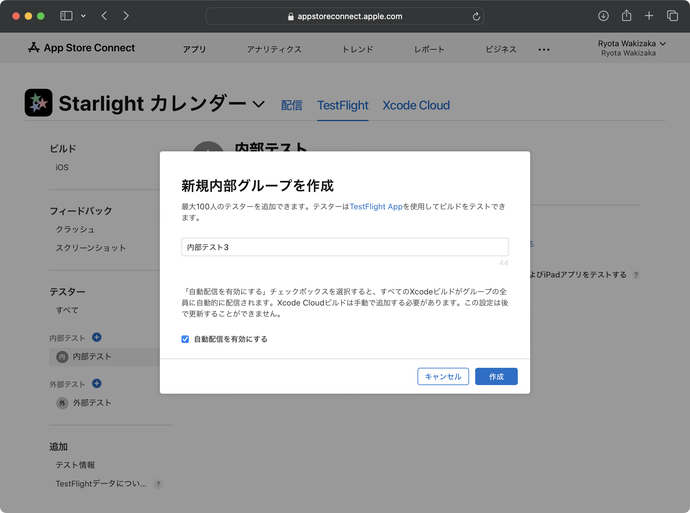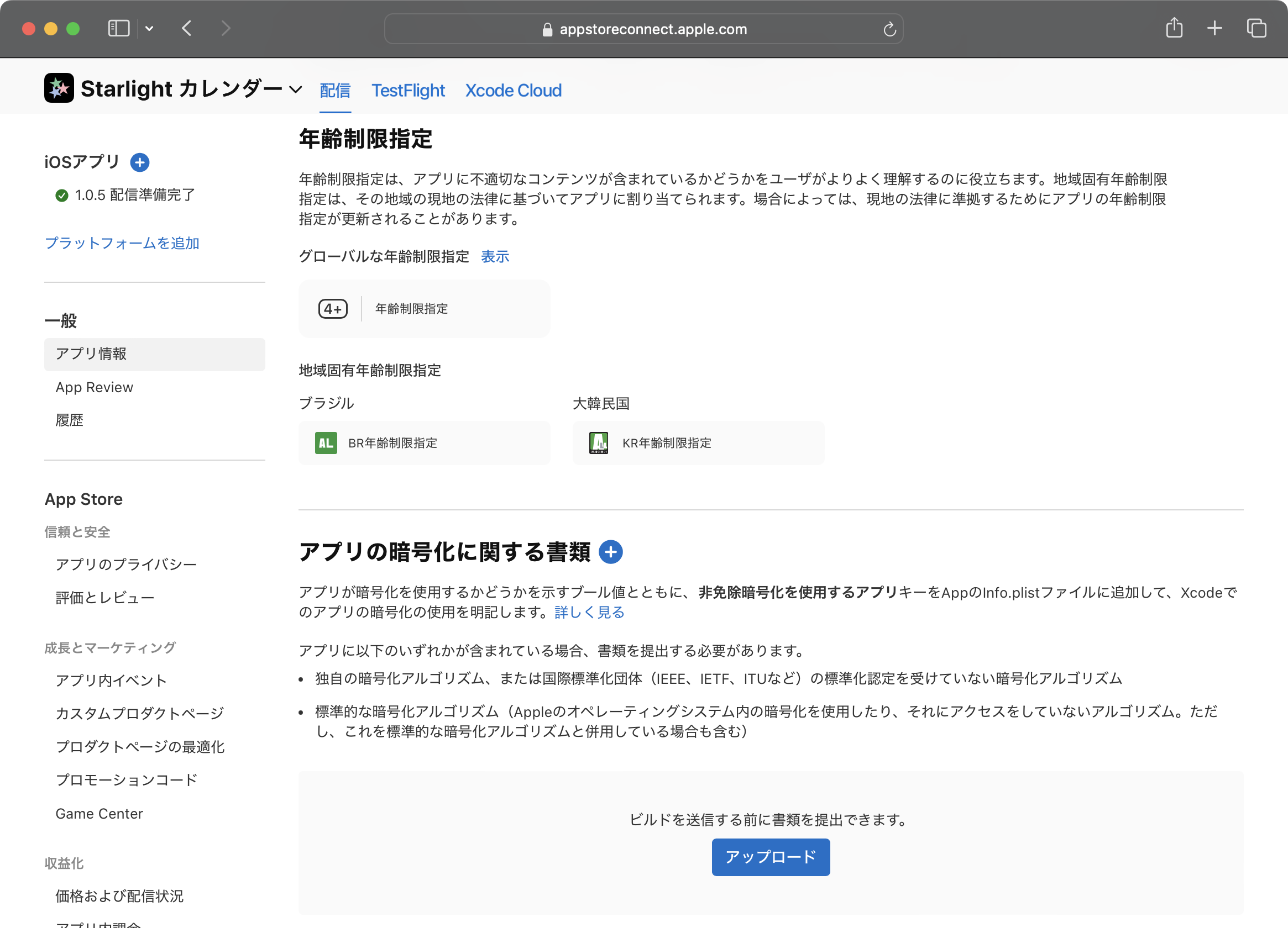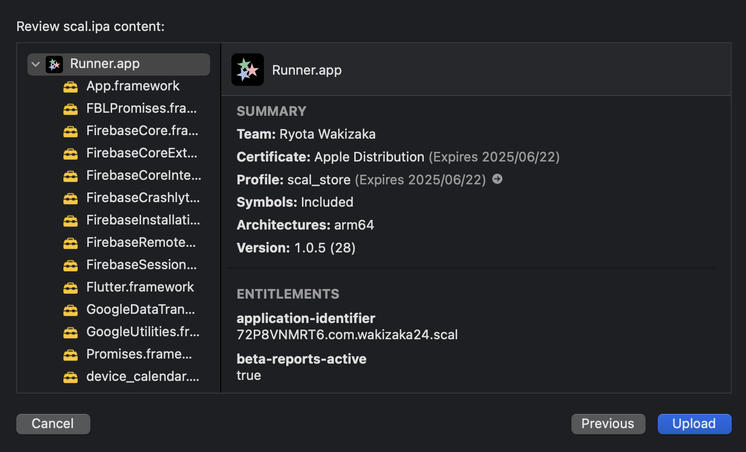 開発したアプリをTestFlight(テスト環境やリリースする環境)にアップロードします。