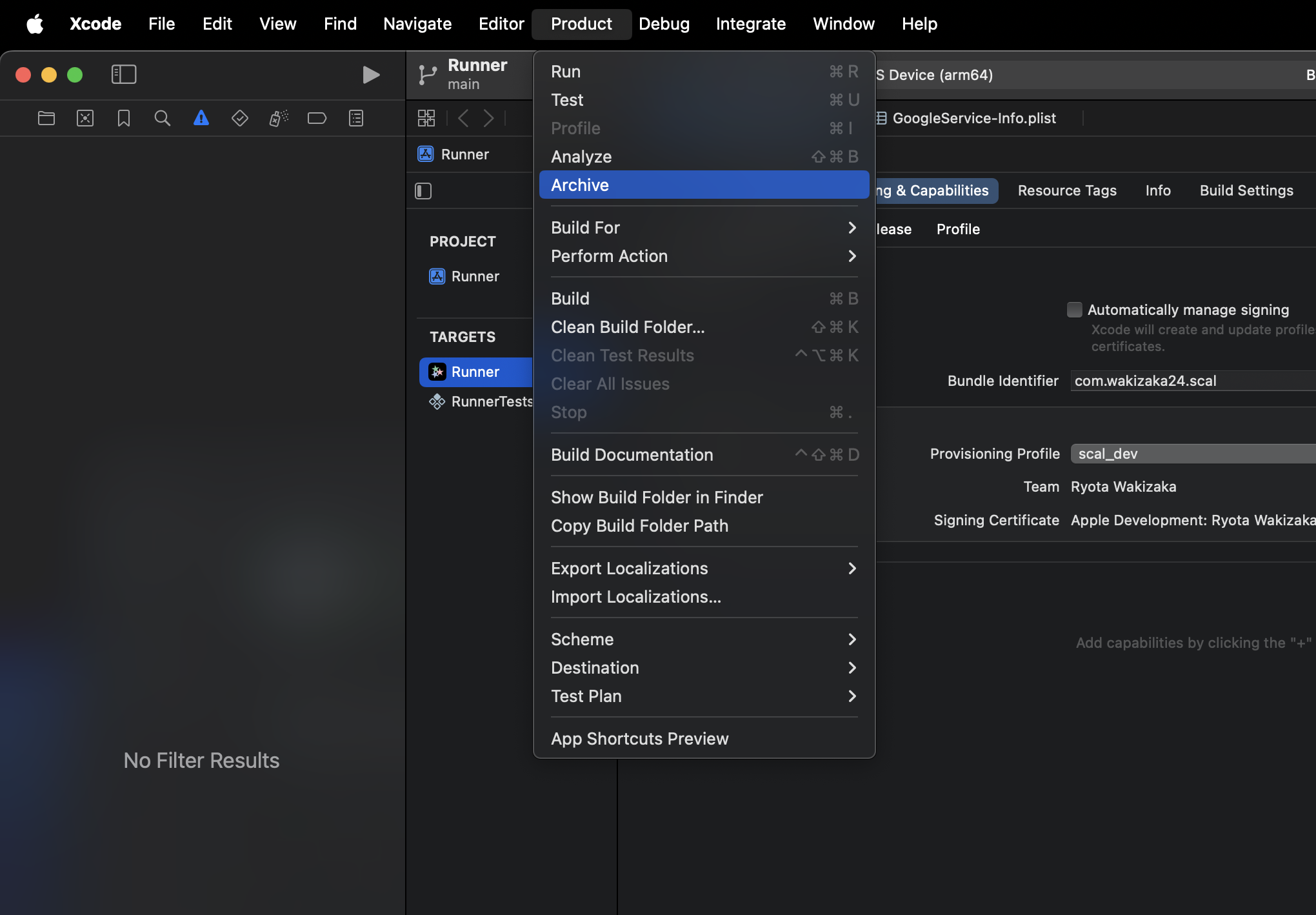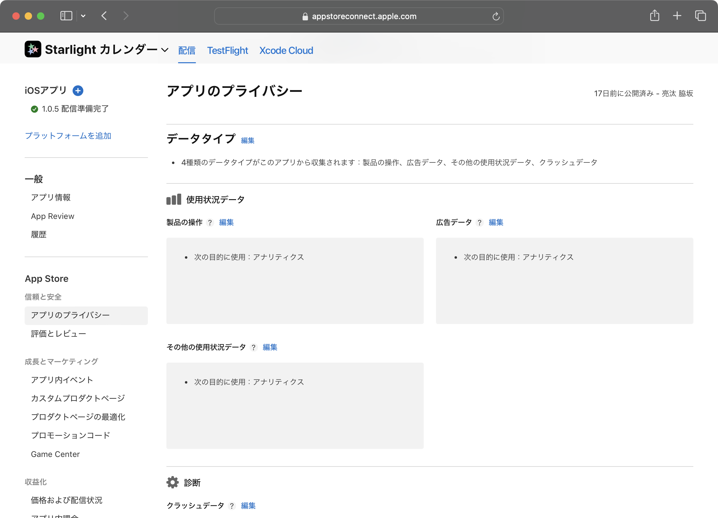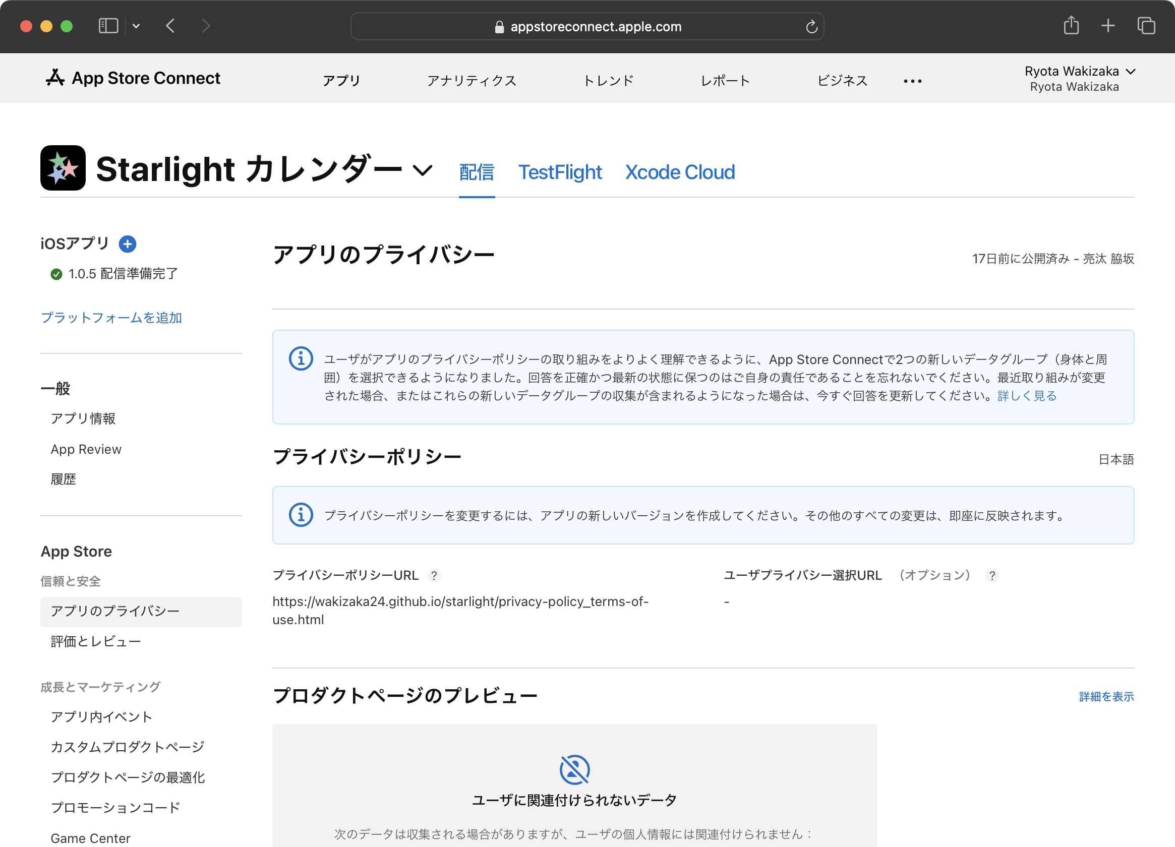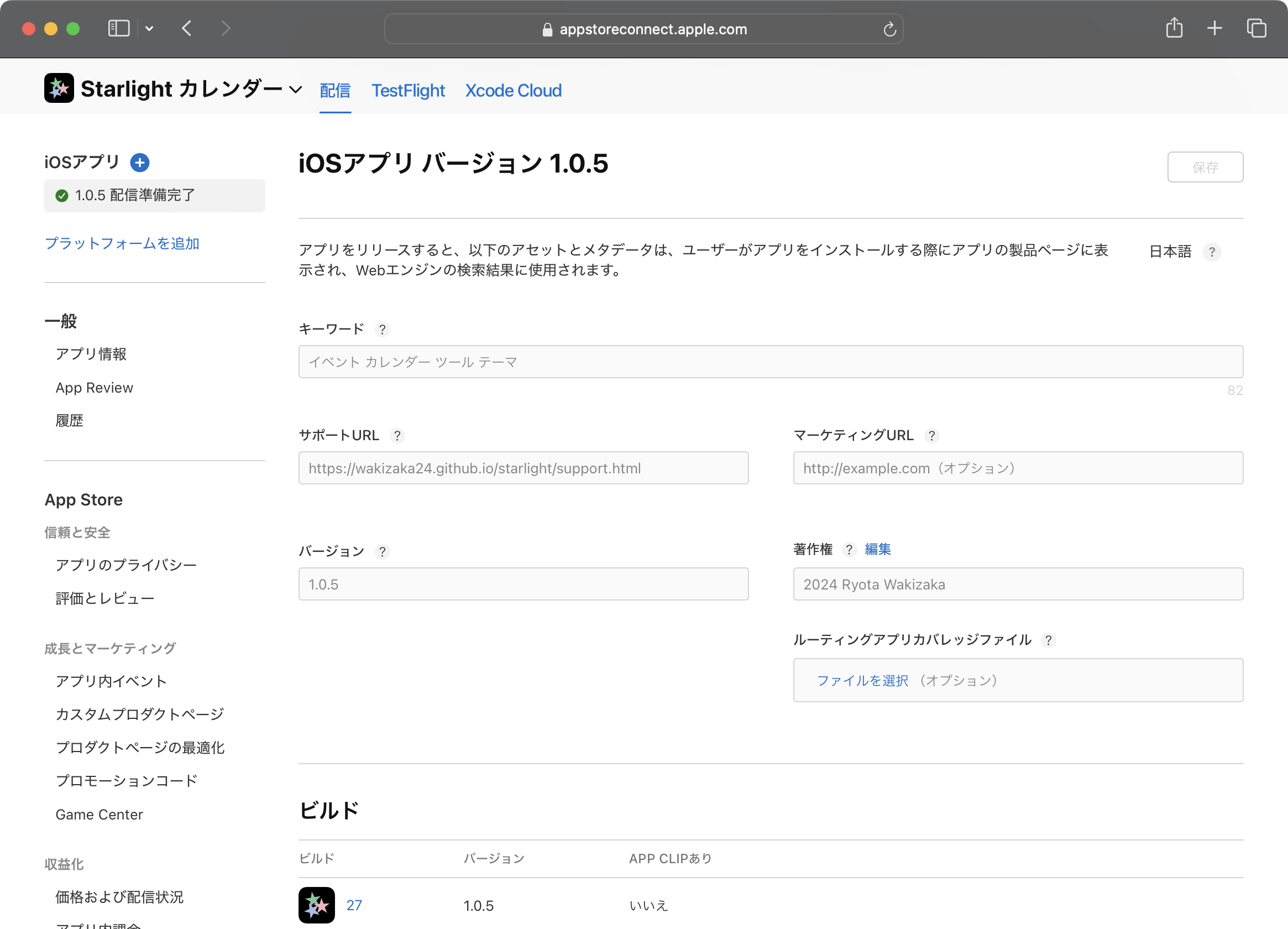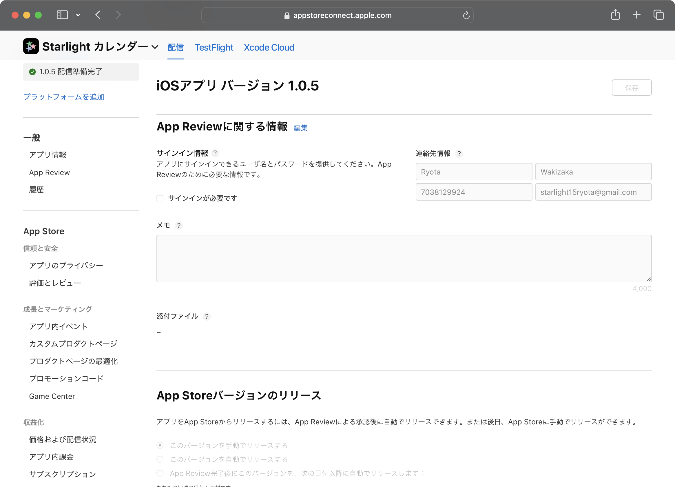 開発したアプリをTestFlight(テスト環境やリリースする環境)にアップロードします。