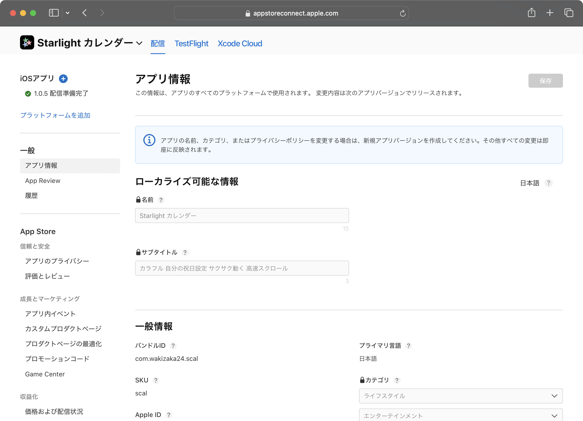アプリを識別する一意のIDを決める必要があります。IDを変更すると別アプリとなります。