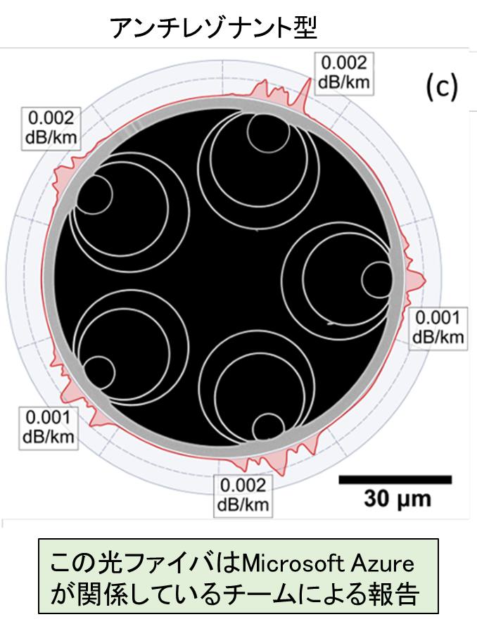 先ほど、従来のシングルモードファイバよりも低い伝送損失の空孔コアファイバを実現したという話を書きましたが、これはMicrosoft Azureが関係している論文です。Microsft Azureは明確に世界最先端の空孔コアファイバ技術をもっている といえるでしょう。