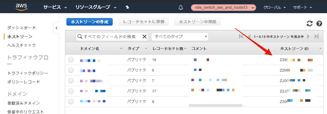 ホストゾーンIDはRoute53で確認します。