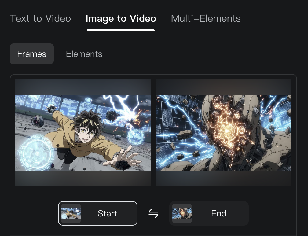 より精密な制御を目指して、Kling AIを使用して、スタートとエンドフレームを指定し、以下のプロンプトでテスト: