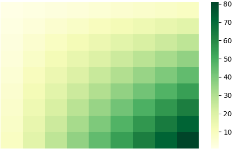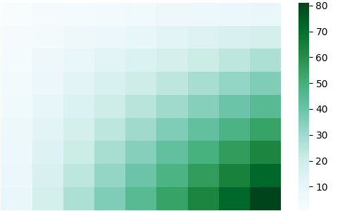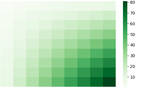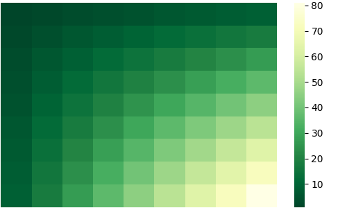 sns.heatmap(df, cmap='Greens_r')