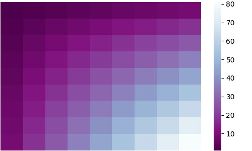 sns.heatmap(df, cmap='Purples_r')